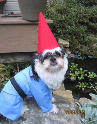 You can also find a similar Gnome Costume for Golden Retrievers or custom sized for larger dogs from the same seller.