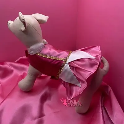 Dress your pet in the magical charm of a Sleeping Beauty costume this Halloween. This delightful pink dress is designed to fit both dogs and cats, providing an enchanting outfit for any Halloween event.