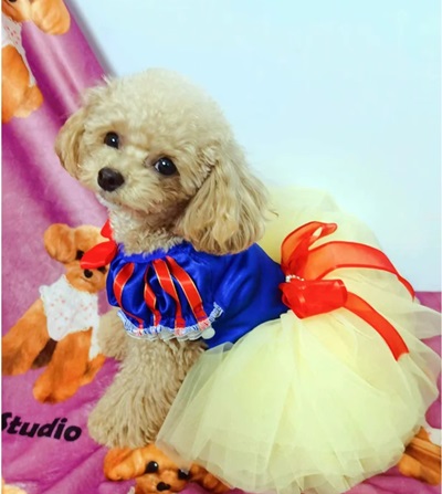 Dress your pet in enchanting style with this Snow White-inspired princess costume, perfect for Halloween or any cosplay event. This charming ensemble includes a vibrant yellow tutu dress that captures the iconic look of the beloved fairy tale character.